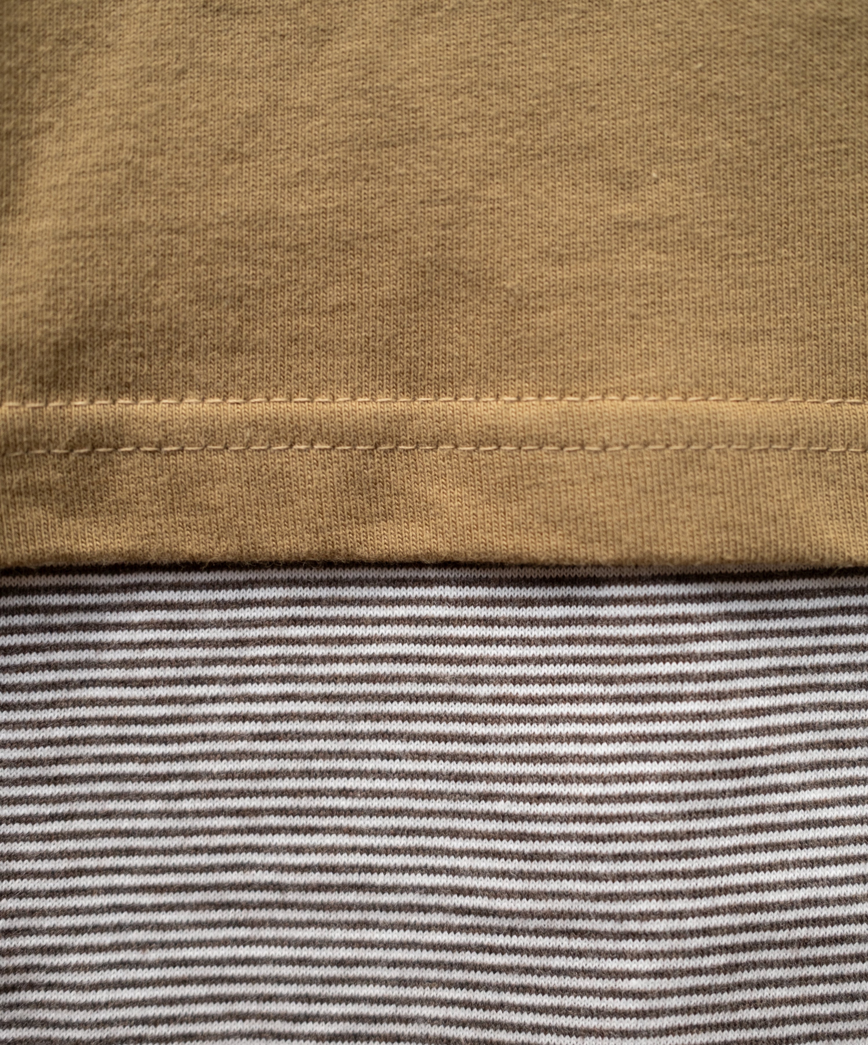 A relaxed, layered tee with subtle stripe detailing along the sleeves for a modern, lived-in look. Mid-weight cotton that holds shape while remaining breathable.