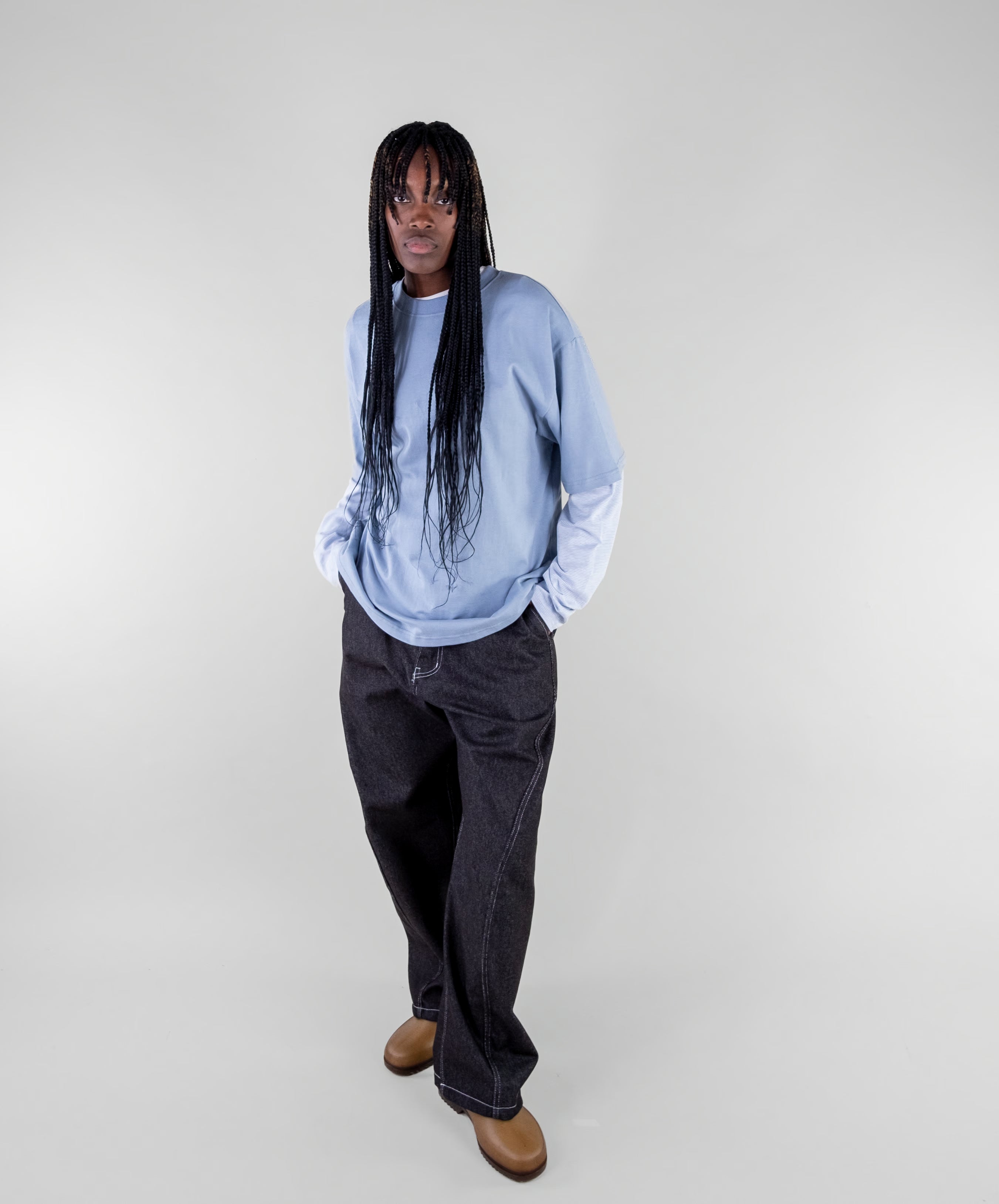 A relaxed, layered tee with subtle stripe detailing along the sleeves for a modern, lived-in look. Mid-weight cotton that holds shape while remaining breathable.
